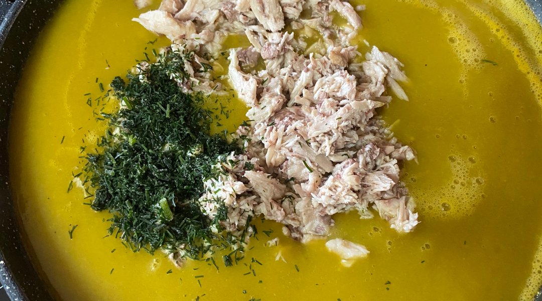 По готовности пробить блендером, добавить зелень и курицу. Можно так же добавить плавленый сыр по вкусу. Дать 5-10 минут настояться.